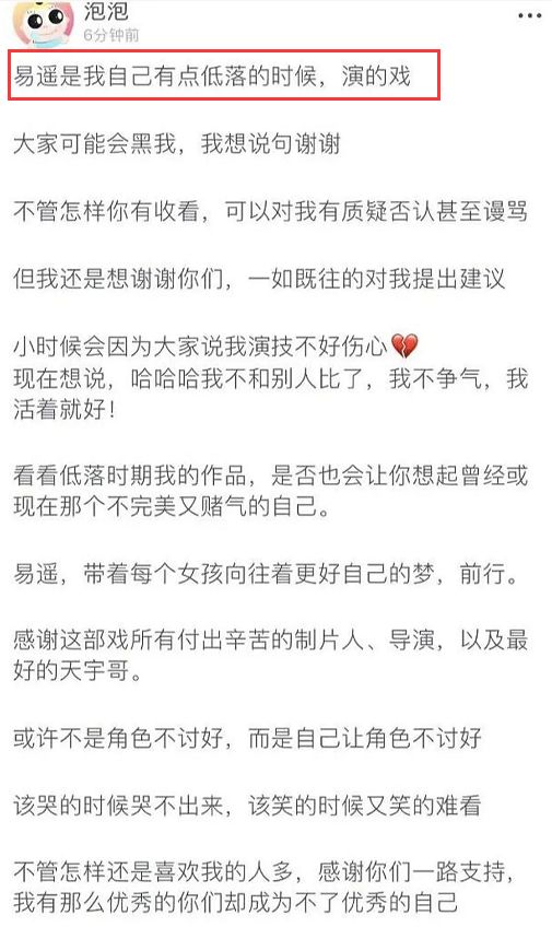 郑爽本人在被大家讨论演技差台词也不行的同时也进行了回应,说自己是在有点低落的时候演的这部戏6 e" |) i; B6 p) W2 p% Y& D