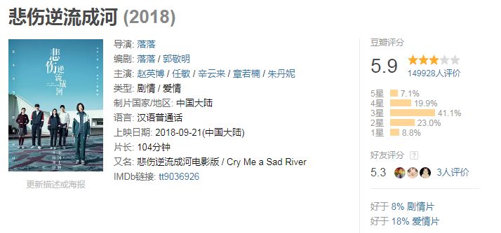0 H) }: u3 h3 ~相信很多人在学生时代都已经看过了这部小说,而且这部小说还在去年改编成了电影上映,启用的基本都是新人演员,豆瓣评分有5.9分,差一点就及格了,这成绩还算是可以。