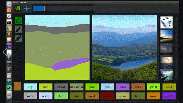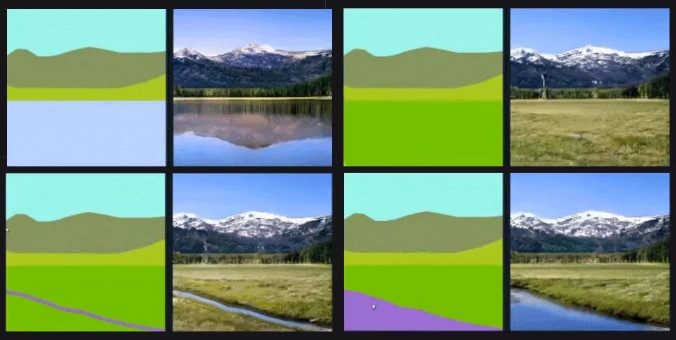 ( \( p5 D$ S* Z/ t, q4 e' Q( h% Q GauGAN:“一笔绘出山河实景” 1 q0 S0 z5 b* _# K) |) ]0 K4 R