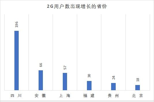 9 P7 Q$ ?* E0 |按照工信部运行监测协调局的统计,从今年2月份到5月份的三个月时间里,虽然全国范围内的2G手机用户总数从2.58亿下降到了2.38亿,但仍然有四川、安徽、上海、福建、贵州、北京这六个省市的2G用户数出现不降反增的反常情况,特别是四川省在三个月时间里竟然新增了196万2G用户。对这些省份而言,2G用户基数的继续扩大无疑将为后续2G退网工作的开展进一步增加了难度。