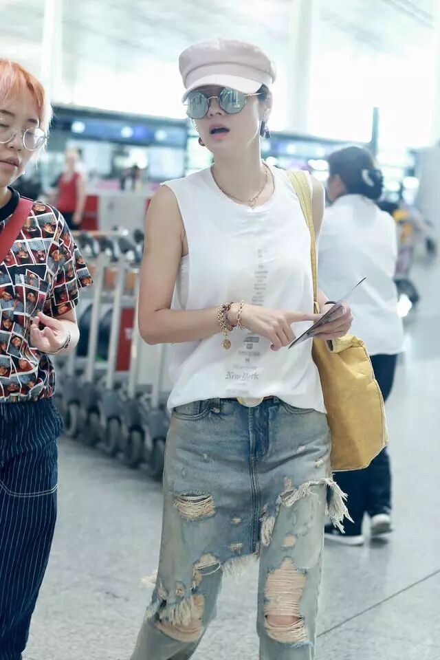 7月26日,有媒体拍到马伊琍现身机场的照片。当天马伊琍戴着一副墨镜,头戴着一顶粉色的贝雷帽,穿她着一件无袖背心,和一条破洞牛仔裤。在她的搭配中,最吸引人的还是耳朵上那一副不对称的可口可乐耳环,一身装扮看上去显得十分潮流。