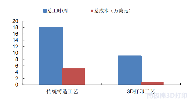 - B' r9 v$ ~) L# d3.2.1、 3D 打印在研发阶段时间和成本优势明显