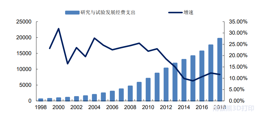 研发作为技术含量和高质量发展的直接体现,不断受到重视,我国研发经费投入也持续增长。2018 年,我国研究与试验发展经费支出达到 1.97 万亿元,过去十年复合增速达到 19.57%。: b! [7 T) s" w1 k& E+ t' P8 {" m. N