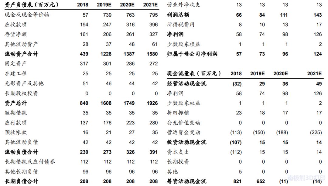 附表:铂力特盈利预测表8 ?: B6 Z0 W0 A" B" k) b