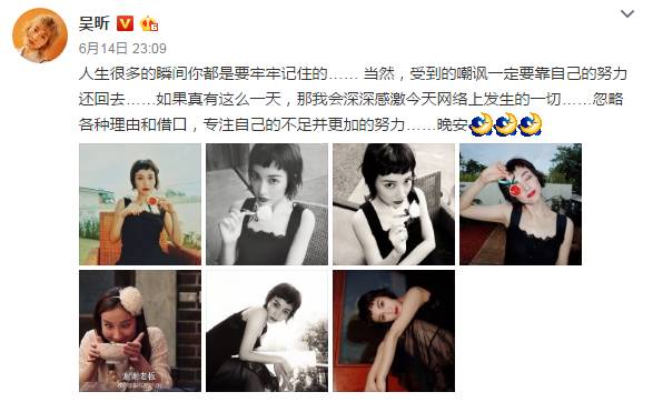/ H% ~) X I* _3 Z; y2 y“受到的嘲讽一定要靠自己的努力还回去,忽略各种理由和借口,专注自己的不足并更加努力。”吴昕如是说。! {. g" w' G: T0 X5 Y