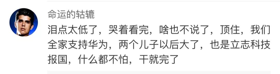 女朋友的话让我很感动。我相信有这么多华为家属在身后默默加油,默默付出,我们齐心协力,公司一定会挺过这一关,再创辉煌!