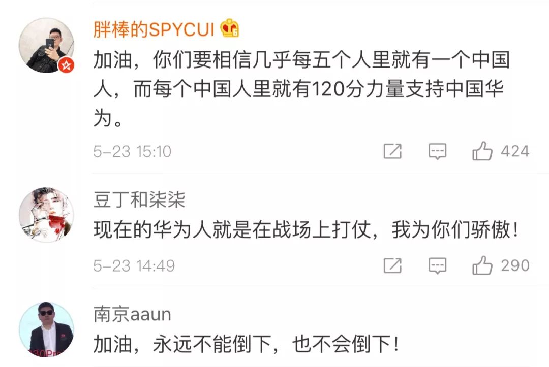 5月23日,华为心声社区官方微博发表题为《我们·华为人》的内部员工信,分享了来自不同岗位的华为员工的真实故事。其中有员工表示,家人以前劝我离职,现在劝我不要当逃兵。还有人说,没有人恐慌,只有人更努力。