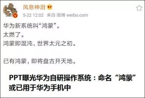 当天(21日)晚间,华为消费者业务总裁余承东也在社交媒体上表示,最快今年秋天,最晚明年春天,华为自己的操作系统(OS)将可能面市。届时华为操作系统还将兼容全部的安卓应用。
