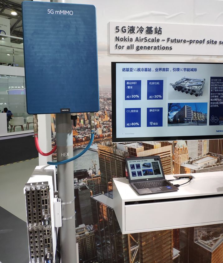 MWC2019上海展上,某设备商推出的“5G液冷”基站