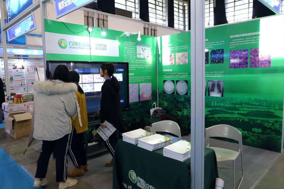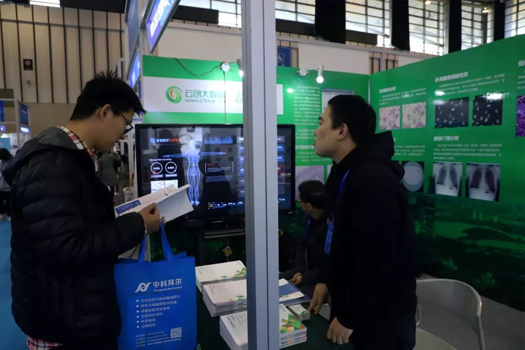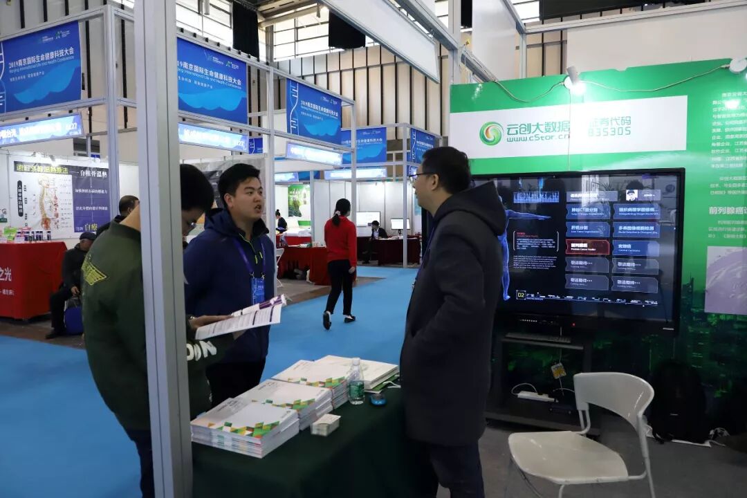 12月9日,南京国际生命健康科技博览会上,GE医疗、飞利浦、强生、微软、英特尔、华为、浪潮、奥林巴斯、先声药业、绿叶制药等众多国内外企业纷纷参展。作为以大数据存储与智能处理为核心发展的高新技术企业,在医疗领域具有丰富技术积累的云创大数据携六大智能医疗识别技术精彩亮相。不少企业、医科院校和医疗系统访客驻足云创展区,与云创现场人员进行业务对接和技术交流。( M8 p& @$ X7 i: L0 b+ x