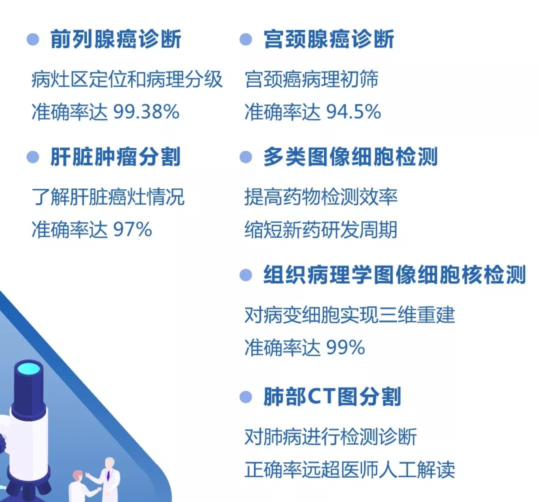 % o2 n$ h" z) x @6 R& U9 b# L/ U$ G2.宫颈腺癌诊断利用液基薄层细胞检测技术(TCT检查)进行宫颈癌病理的初筛,有利于发现宫颈癌早期病变,并及时治疗。目前,该算法的准确率达到94.5%。" q* O" P' A% U/ b