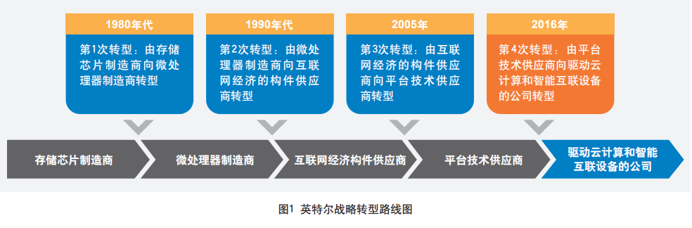 自1968年成立至今的51年间,英特尔共经历了四次战略转型(如图1所示)。