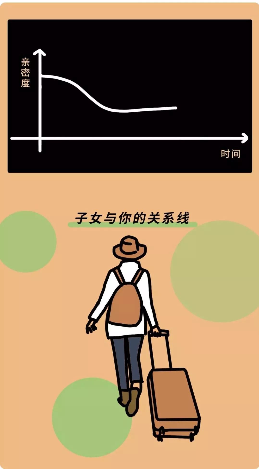 为人子女时,你觉得与父母的亲密度低谷是在青春叛逆期和工作忙碌期,但当自己成为父母后才发现,孩子从完全依赖你的婴儿成为一个独立的人,就是亲密度一天天递减的过程。5 {4 H; X* G# _$ d, _* X