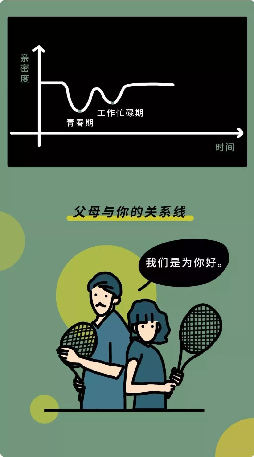 大部分人与父母亲密度的低谷,往往出现在青春期与工作后。 进入青春期的你,和父母之间隔着银河系。; z" W) v4 ~% I$ q7 i