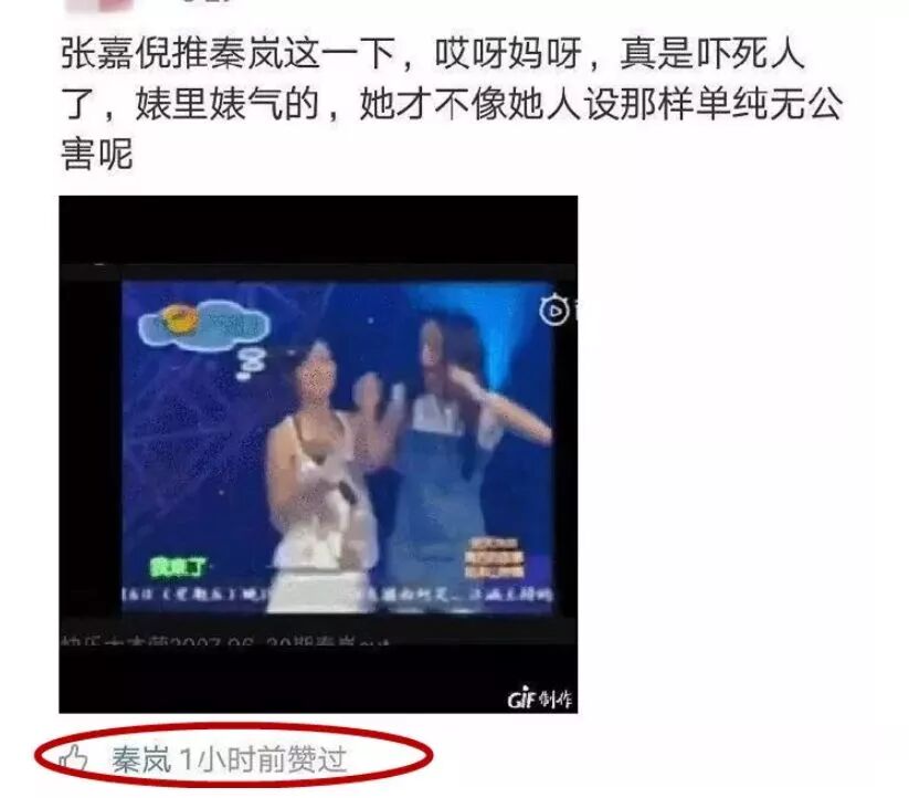 很妙的是秦岚本人还点赞了这条微博 + g# z4 [7 N, q. f' u0 b