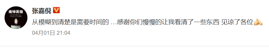 3 }; M) n3 A, n$ k# q4 B张嘉倪自己发了条意味深长的微博