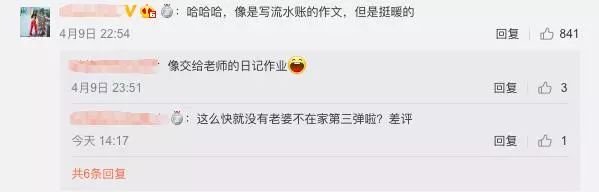 但是也有网友调侃汪小菲称:“哈哈哈,像是写流水账的作文,但是挺暖的!”“今天不得瑟了,因为老婆回来了!”“谁要看你吃的啥,把老婆和小姨子晒出来。”“挺温馨的家庭氛围!”