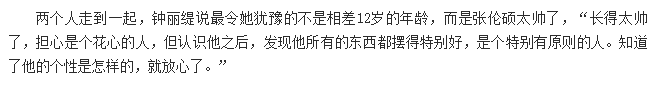 : I7 H V6 Q$ s/ J+ B) r b4 ]' y" @当然结婚只是第一步,后面钟丽缇如何去和张伦硕相处,才是夫妻婚姻是否长久的重要环节。