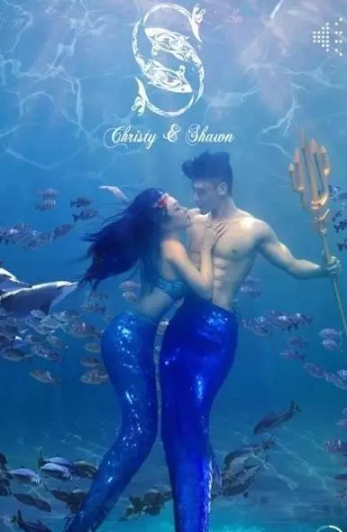 " _, E) m' E s4 h' A两个人很聪明的维持着这段感情,并且在认识一年多以后结婚了。从婚礼请帖、婚纱照到婚礼现场全部都是海洋风,因为他们的CP名就是“人鱼夫妇”。% l0 p$ l: _0 s3 n+ U3 {