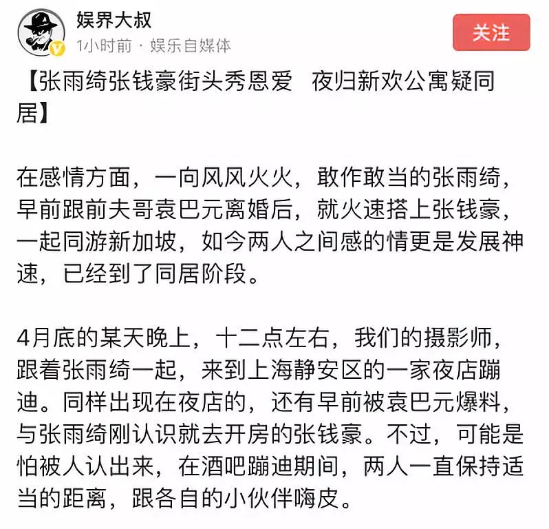 而且早在当时袁巴元就爆出了张雨绮的新男友张钱豪: