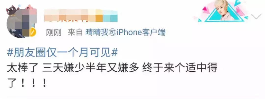 6 D1 |3 V/ n2 a. L还记得,之前朋友圈功能出现3天可见以及半年可见时大家就各持己见,也有很多人都表示不愿意接受这个功能。