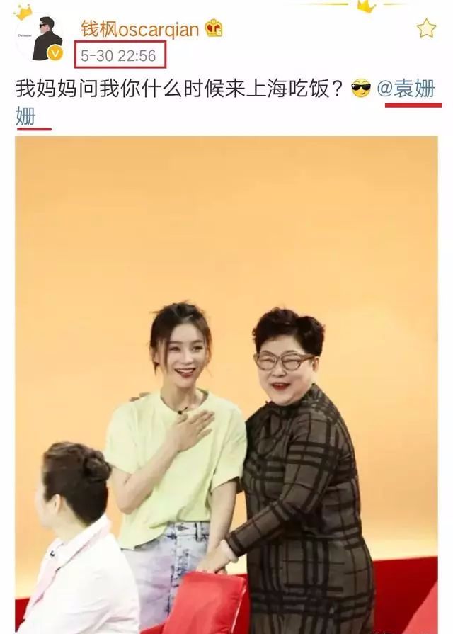 著名湖南主持人钱枫深夜22:56分发了一条邀请袁珊珊来上海吃饭的微博:“我妈妈问我你什么时候来上海吃饭?(酷)”很明显可以看出钱枫这是话中有话呀!注意关键词“妈妈问我”“你什么时候来”。钱枫妈妈果然慧眼呀,母为子忧心婚嫁之事也正常!像袁珊珊这样的好女孩也是一眼看中,迫不及待的想办法邀请过来。真的全是妈妈邀请的吗?
