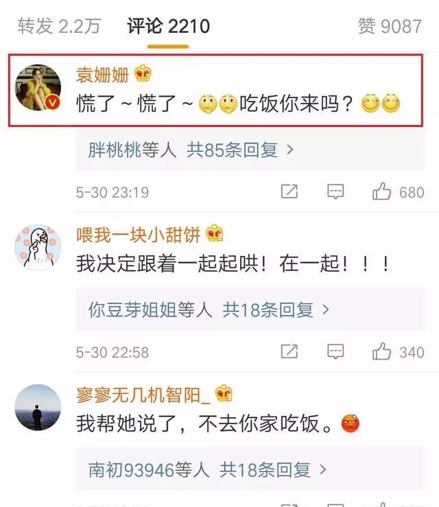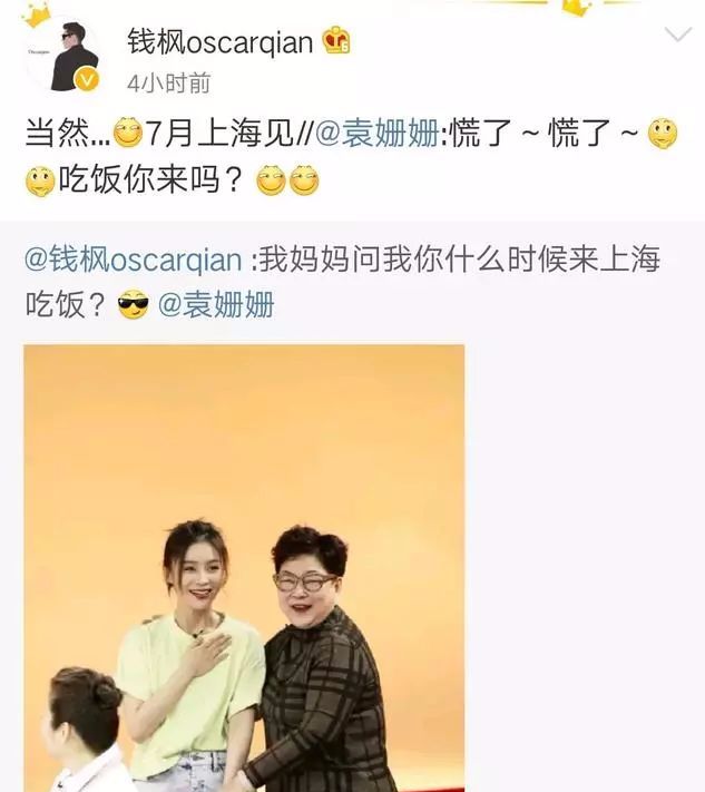 . p4 Y; P6 ~+ \当钱枫深夜发出此邀请吃饭微博10分钟后,袁珊珊编看到了直接答应了,爽快羞涩的回了一句:“慌了慌了,(撩人)吃饭你来吗?”注意圈出重点词“你来吗”,反问语气词,有点迫不及待的直接问钱枫你一定要来,袁珊珊也很想钱枫一定来的意思!即便袁珊珊知道钱枫的意思,但也是话中有话,袁珊珊明白钱枫心意,钱枫借妈妈吃饭为由,袁珊珊反而大胆反问你一定要来!真是活宝的一对,就像那刚刚开始恋爱的情侣,有爱说不出,连说话也是羞涩的。! V# e @- I7 m# @& W G