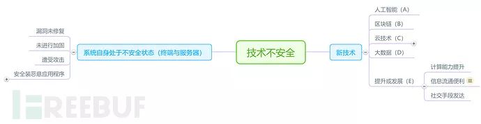 利用技术的不安全性导致体系处于不安全状态,分为新技术的利用导致的不安全和体系本身的原因引起的不安全。一些新兴技术的兴起和利用可以对原本的体系状态发生变更而导致不安全性。如在没有云计算技术之前,数据处理时利用中大型机,不用考虑数据一致性的问题,因为数据就一份。但在云计算环境中,数据一致性问题就不得不考虑,因为它分布式存在多个数据副本,每一个副本很有大概不一样。体系自身的不安全状态有毛病未及时得到修复,服务器未进行加固或安装了恶意的应用程序,或者已经遭受到了攻击而被控制。如图: