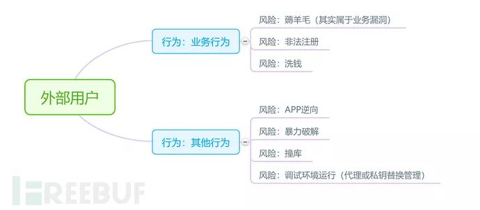 我们从每一类用户对应的行为出发,就可以识别出这一行为有大概会产生的风险,从体到面,再到点的思维方式可以避免我们的思索产生盲区。