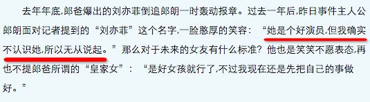 ( r7 W5 h W0 k9 g( t/ T3 i" Y7 I. l' Z说到这个,当时还有一个很有趣的故事:2006年,网上突然传出这么一条新闻,说刘亦菲倒追郎朗被拒绝。郎爸还认证了?