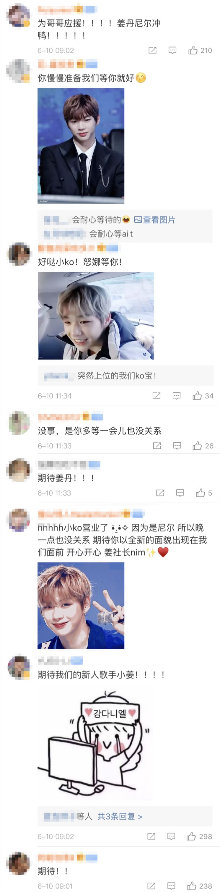 昨日下午,姜丹尼尔粉丝纷纷发表ins为爱豆预热“各位!今晚11时姜丹尼尔即 将通过ins直播与大家见面,我们今晚见”。