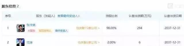 # X2 Z% ~; |+ t: e% |$ N x但细心的网友发现其实张帅只占了2%的份额,其中98%都是范冰冰的母亲张传美投资的。其实换句话说就是范冰冰是这家美容院的最大股东!这是在搞什么乌龙??0 c Z& [2 b. e6 u, y1 M6 B; `