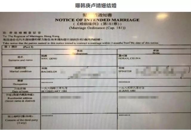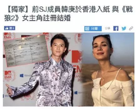 据港媒报道,韩庚今天和卢靖姗在香港注册登记结婚!据悉,两人于去年公开恋情,此前女方曾秀出无名指钻戒,当时就已推测结婚。# b1 H& f( v |& ~% }$ @: B1 N