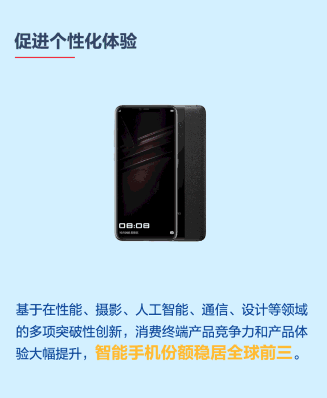 除智能终端市场外,华为2018年企业业务实现销售收入744亿元,同比增长23.8%。在首次实现百亿美元规模后,面对智能时代,华为对企业业务的新定位是“Huawei Inside”,即通过“无所不在的联接+数字平台+无所不及的智能”,致力于打造数字中国的底座、成为数字世界的内核。