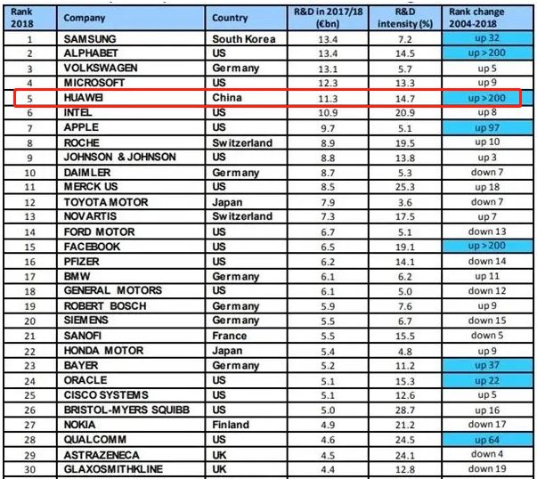 因此,在今年1月欧盟发布的一组全球2500家企业的研发投入排行榜上,华为才能骄傲地站在世界第五的位置,不仅在中国企业中“一骑绝尘”,在全球更是高于因特尔和苹果公司!& _# t$ X7 L) N
