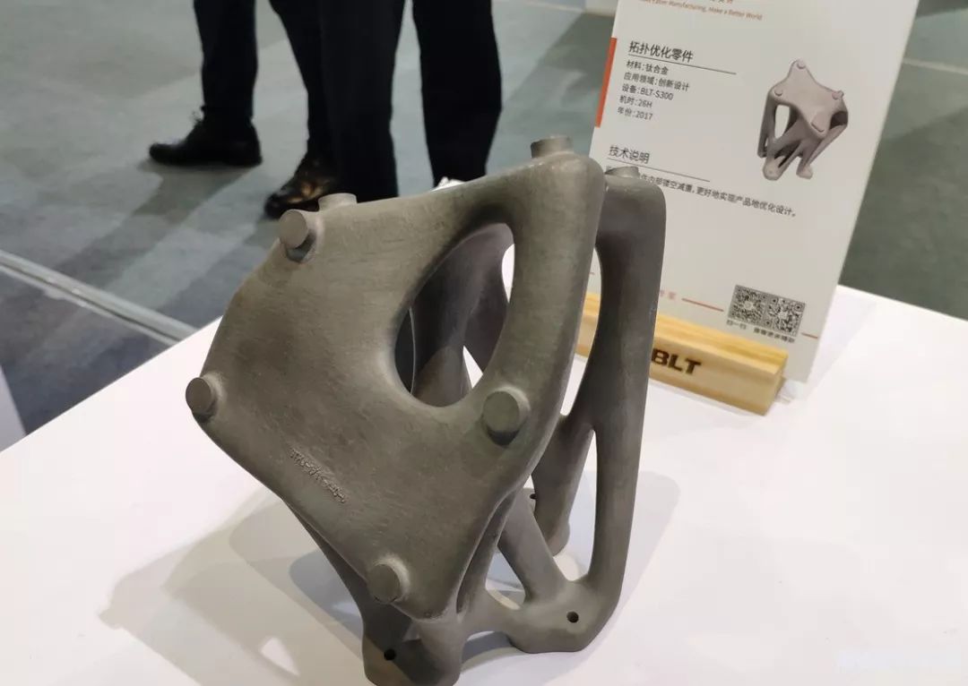 / p0 y; v& W) C& @8 o" H% O△南极熊配图:3D打印的钛合金拓扑优化金属零件,使用铂力特的BLT-S300 金属机打印了26个小时