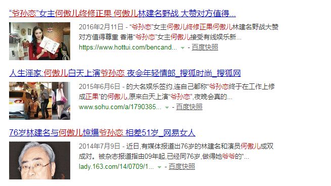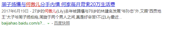 即使现在搜何傲儿相关词条,也多是关于“爷孙恋”的。$ \* ?% Z! r( d! _7 h% N$ q