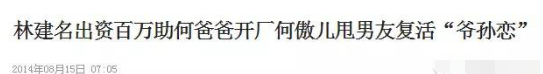 然而“爷孙恋”的结局在16年9月份,也以何傲儿认林建名为干爹结束。5 w7 O" A# w9 k. R- l