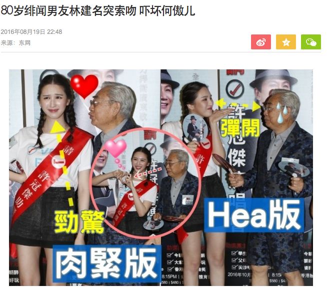 不过何敖儿接的剧多是些酱油角色,她并没有凭借作品大火,反而因为和富商林建名相差51岁的“爷孙恋”轰动了香港。