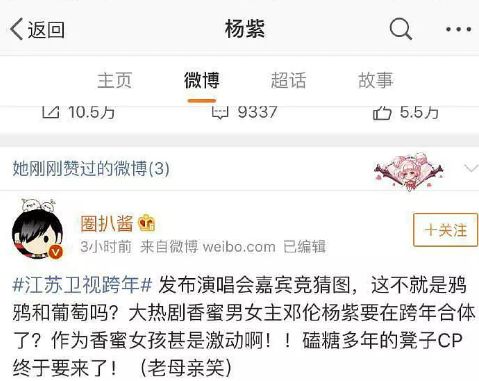 ) d4 ]. G) ]* D, i& |: K秒删之外杨紫还时常“手滑”,比如点赞CP粉微博↓