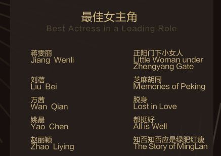 ' H3 V& y! P4 A3 _- w不过再让我们来看看这次的白玉兰奖。 8 x( L# L8 x. E" }( j' G( P5 @: J6 W9 q