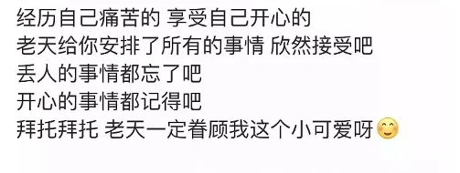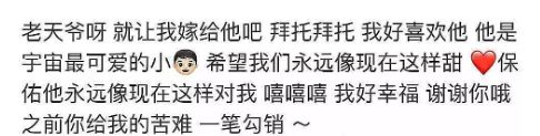 很快她又在大号里把这条微博删掉,这边小号里再次不忘抒发一下感情,不过小懂觉得这个句式真的是有点熟悉,尤其是最后一句话:“拜托拜托,老天一定眷顾我这个小可爱呀”↓