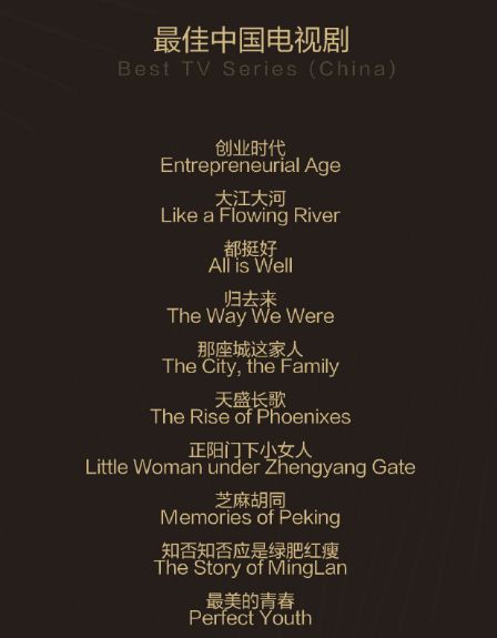 + t& [) d9 H) S! ]# G9 ?' w正午阳光成了大赢家,光是最佳中国电视剧就斩获了三个:《都挺好》、《大江大河》、《知否》↓- V$ d1 t" _6 J% d* ^4 U( j5 B4 b) N