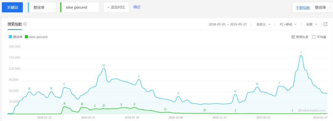) {2 O; X* j7 p0 h* B9 |' _ 蔡徐坤与NINE PERCENT百度指数对比