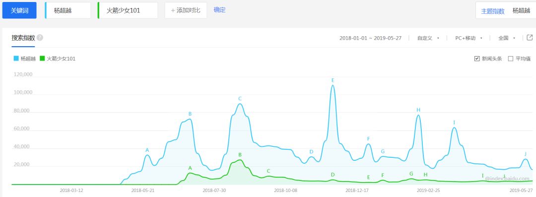 & o" V% ?6 I( T O2 ?1 C2 T; Y0 V 杨超越与火箭少女101百度指数对比 : Y* ]; r e% i2 F2 T+ S