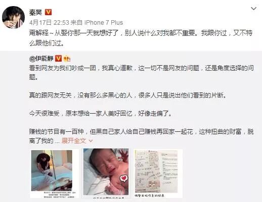 ; ^0 v( e' I& P7 {前几天秦昊过生日,伊能静零点为其庆生,一封家书酸倒众多网友。6 h% e6 t" G! Y! x$ z% g( c5 b