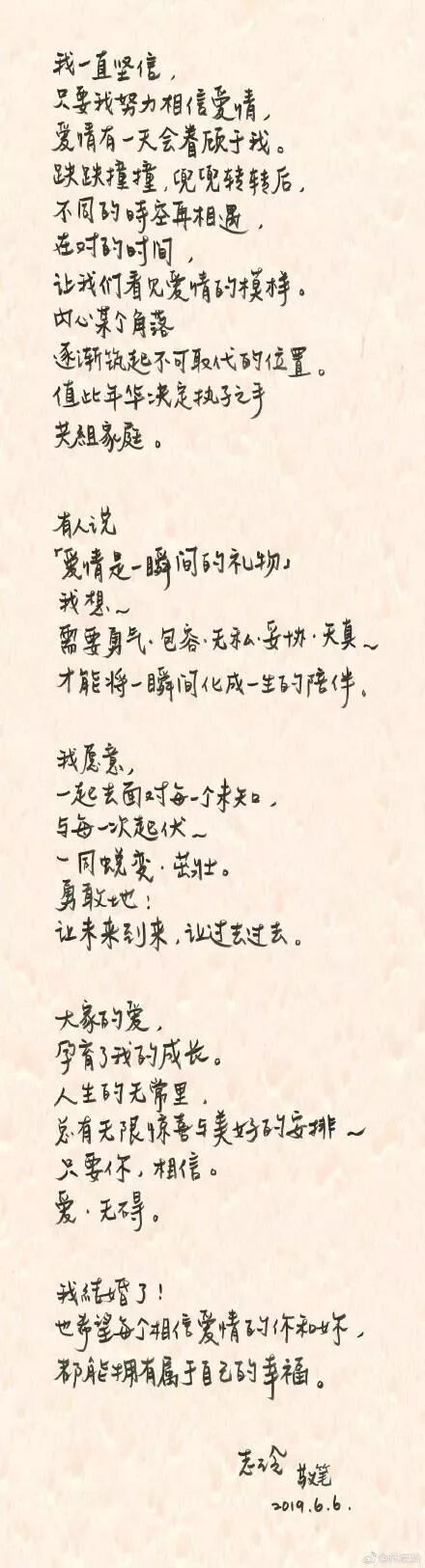 & X& @1 t1 e! U1 W- a一直都对感情问题三缄其口的林志玲,也第一次用亲笔信的方式表达了自己对于婚姻的憧憬。+ [+ l; c, v5 l! \. _