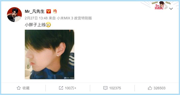 随后吴亦凡就自嘲一样发微博说自己是小胖子,获得了网友 100W+ 的转发。