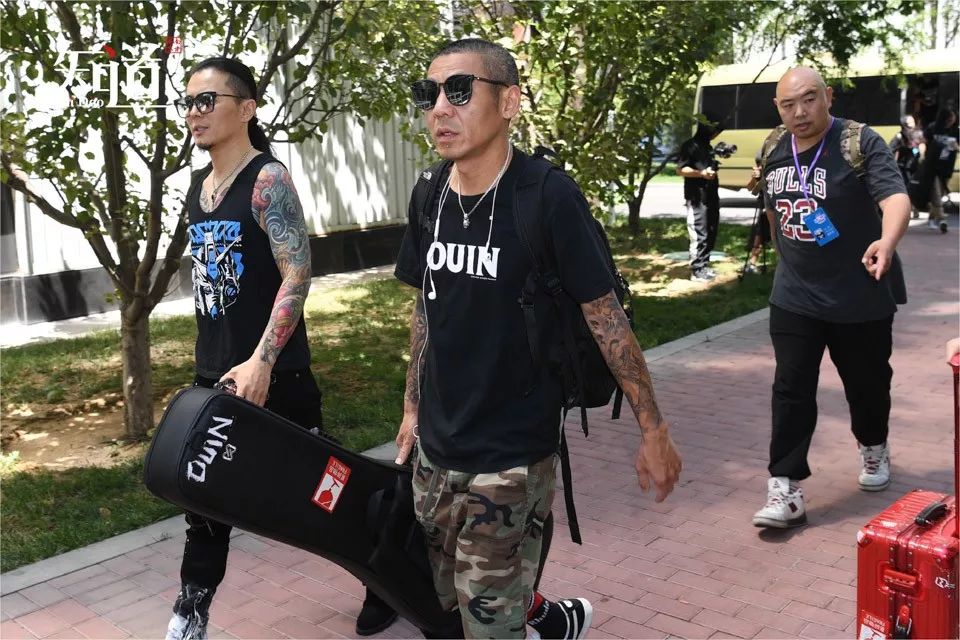 2019年7月3日,北京,《乐队的夏天》录制现场,面孔乐队(左一主唱陈辉,左二贝斯手欧洋)。(IC photo/图)1 _7 y% D* i" d