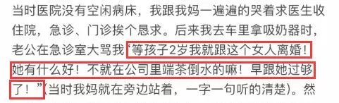 夫妻矛盾进一步升级。男人在急诊室大骂:“等孩子2岁我就跟这个女人离婚!她有什么好!不就在公司里端茶倒水的嘛!早跟她过够了!”
